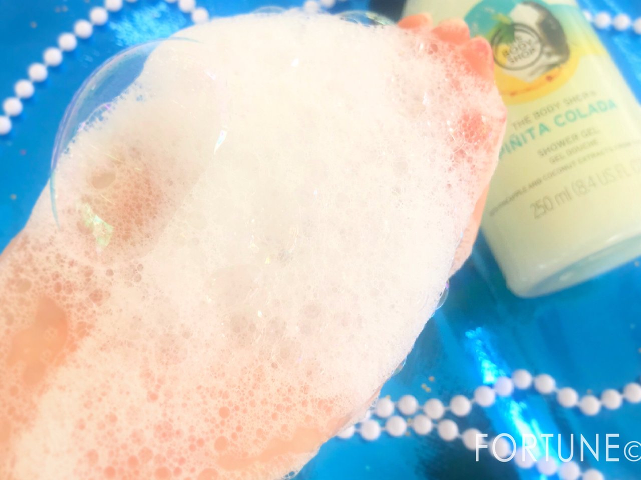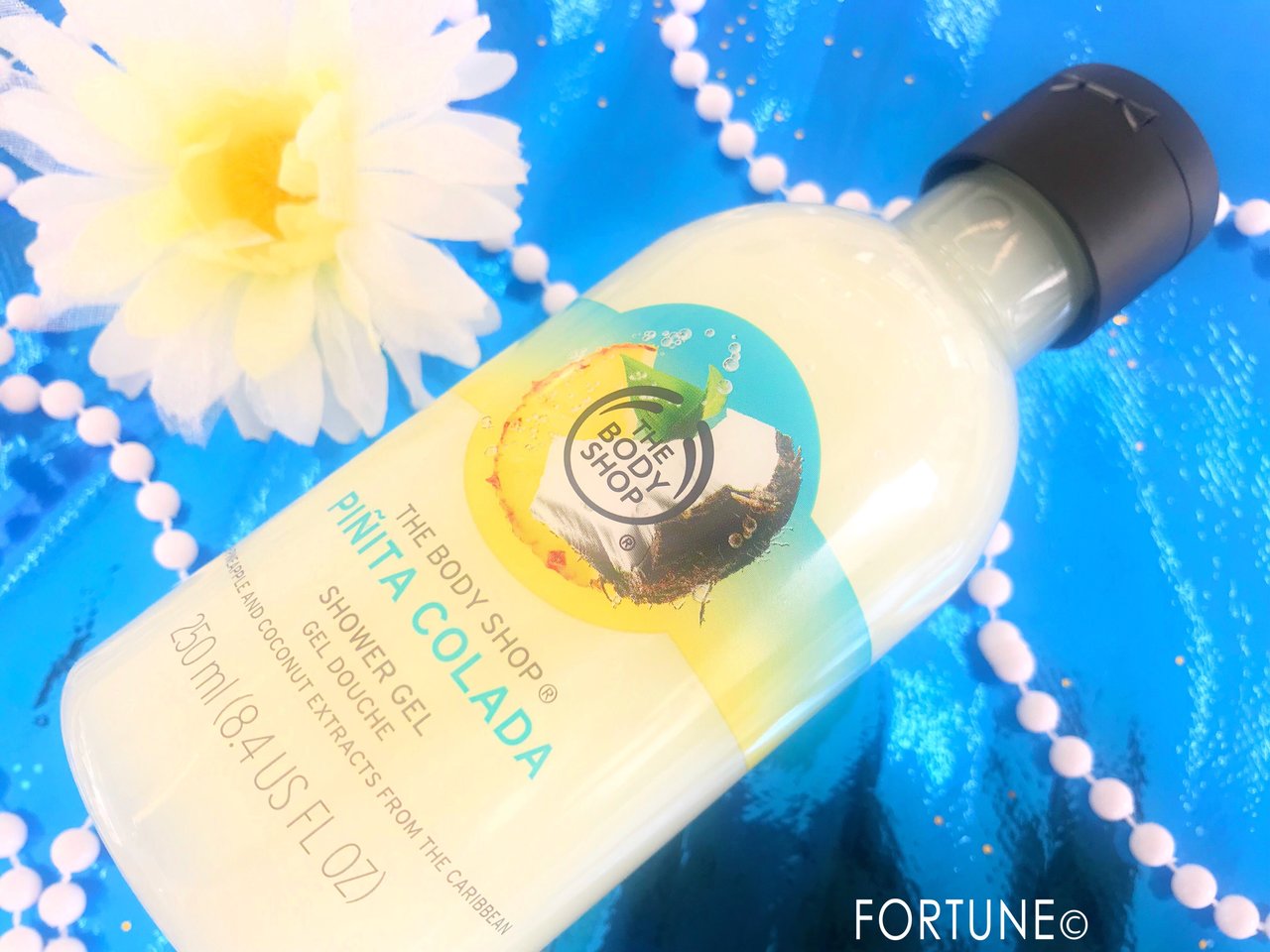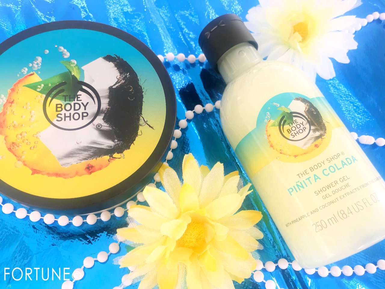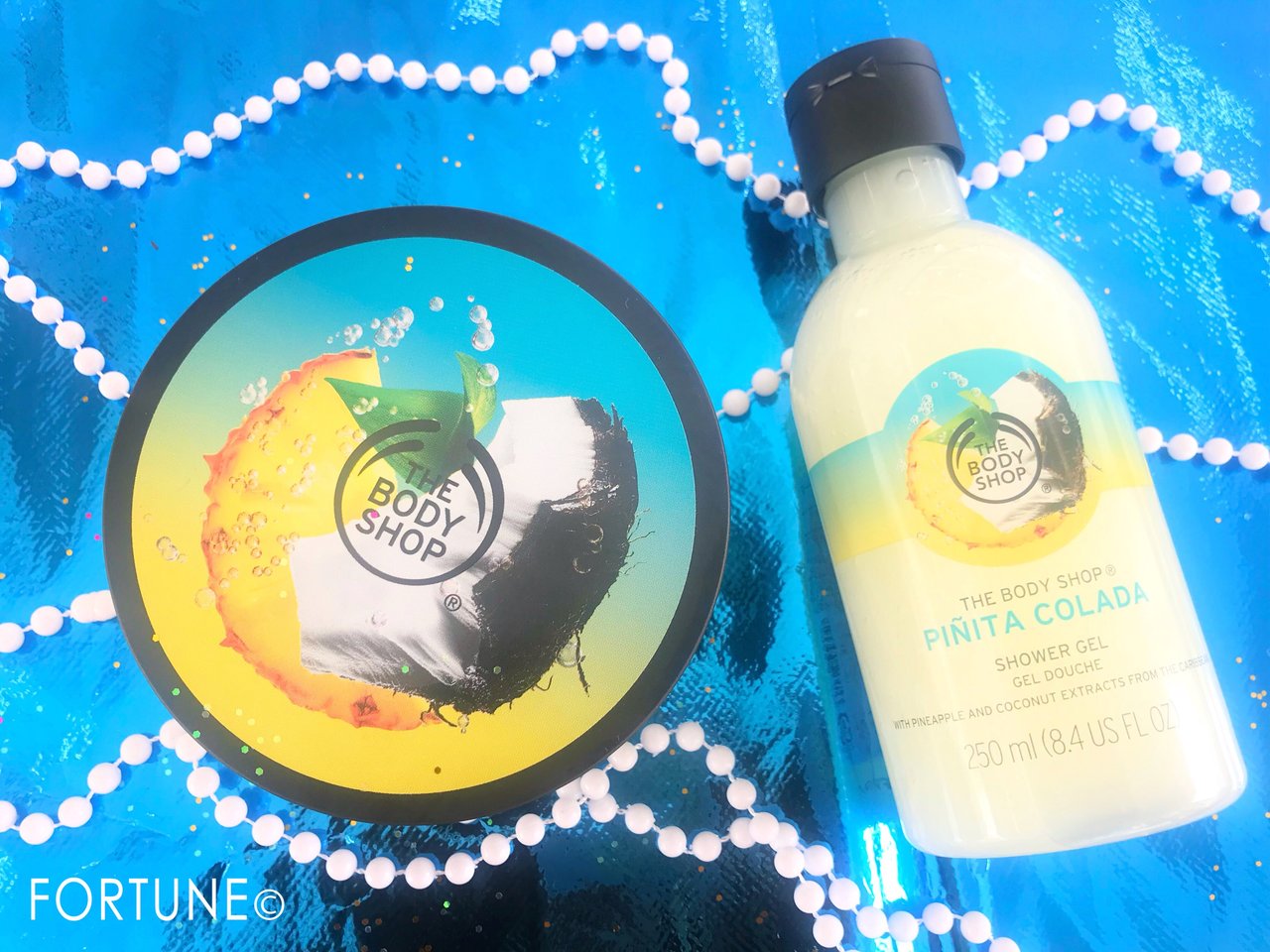 「ザ ・ボディショップ」では、ピニャコラーダのノンアルコール版である「ピニータコラーダ」をイメージし、ココナッツとパイナップル、さらにパッションフルーツやマラスキーノ・チェリーを加えて、甘〜くトロピカルな香りに仕上げているのが今回のアイテムです。