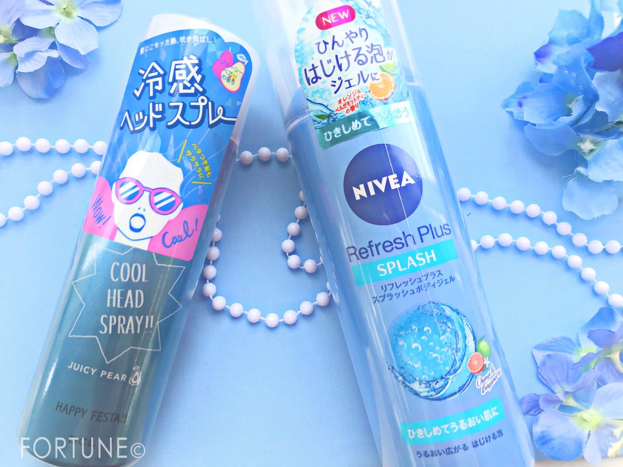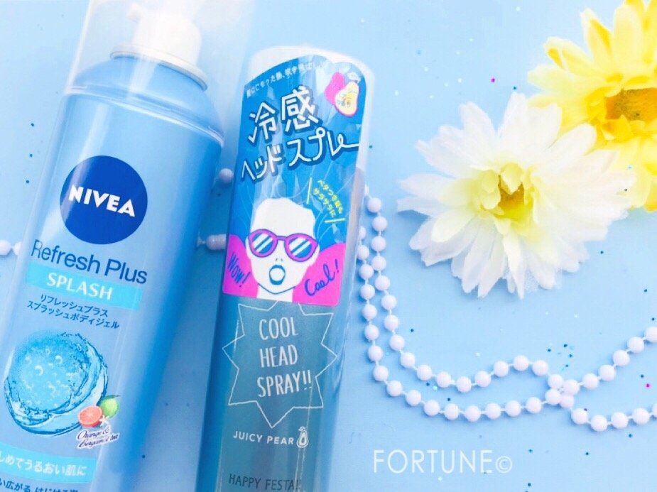 今回は夏の暑さをやわらげるひんやりスプレー2種「ハッピーフェスタ クールヘッドスプレーN ジューシーペアの香り」と「ニベア リフレッシュプラス スプラッシュボディジェル」をご紹介しました。