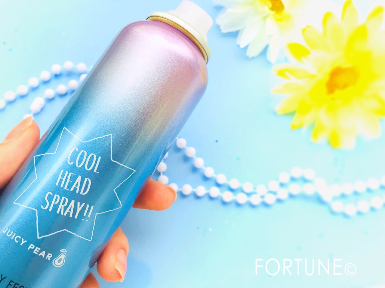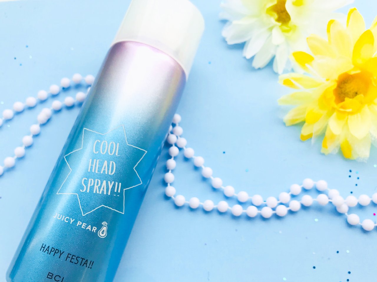 キラキラなパッケージがキュートな「ハッピーフェスタ クールヘッドスプレーN ジューシーペアの香り」は、髪の毛にこもった熱をすっきりリフレッシュしてくれる爽快なヘッドスプレーです。