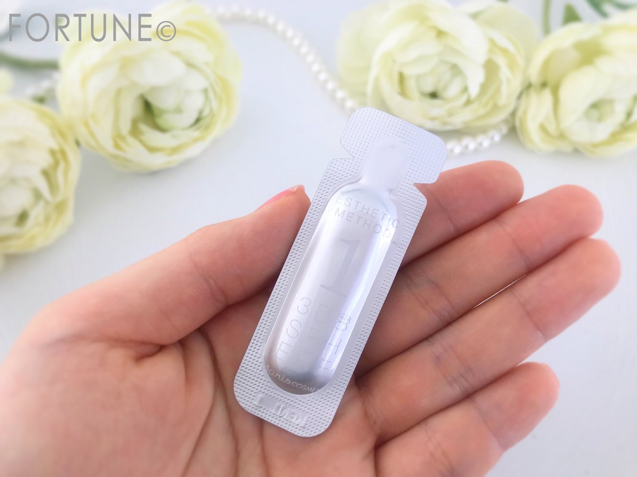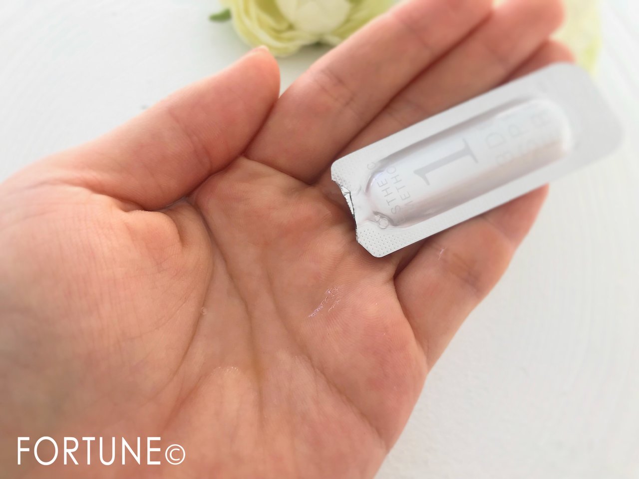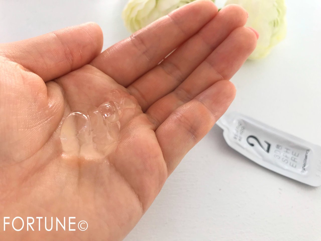 スフィアドロップと同様、個包装のパウチになっています。ぷるんと弾力のあるゼリーのようなみずみずしいテクスチャーの美容液です。こちらを使用して、お肌のすみずみまで潤いを届けていきます。