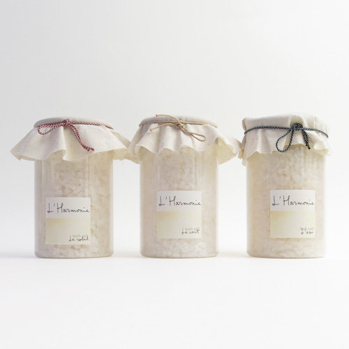 ナチュラルながら洗練されたデザインが素敵な「L'Harmonie」のバスソルトは、フランス語で「ハーモニー」を意味しており、太陽をイメージした「Le Soleil」、風をイメージした「Le Vant」、水をイメージした「Le iu」と自然のそれぞれの良さをイメージして作られています。