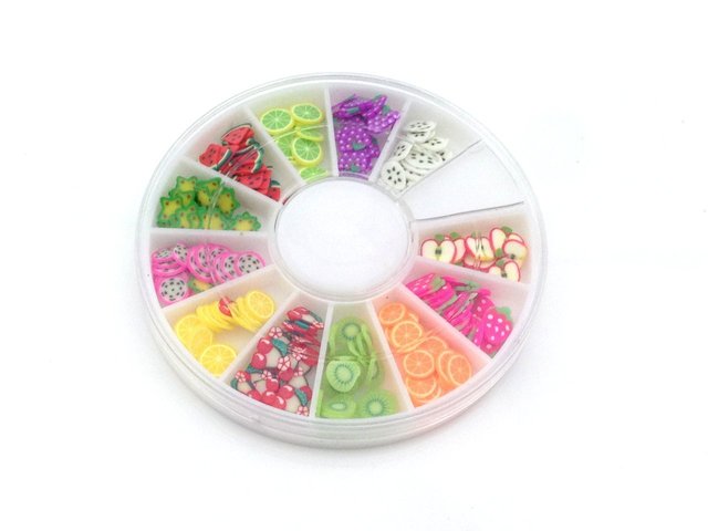 セルフで簡単にフルーツネイルをするなら、あらかじめスライスされたフルーツパーツを使っちゃいましょう♡オレンジやレモン、キウイやライムなどカラフルなフルーツスライスパーツが12種類も入っていてお得ですね♪