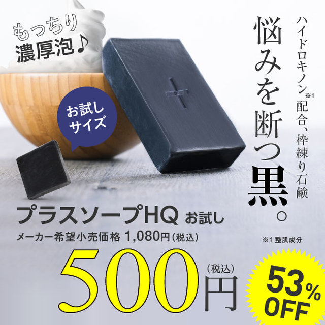 プラスソープHQはピーリング石けんですが、顔にも安心して使える優しい洗い心地です。