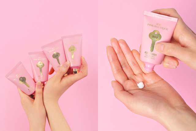 3CEの「ピンクブティックフレグランスハンドクリーム」は、パッケージが最高に可愛い!ほのかな淡いピンクカラーを基調としたカラーリングが女子の心を鷲掴み。中央には、ホテルのキーをイメージしたデザインがプリントされていて、種類別にちゃんとナンバリングもしてあります。また、何といっても、ゴールドの蓋がゴージャス感を漂わせていますよね。使うのが思わずもったいなく感じてしまうほど、特別感溢れるゴージャスなハンドクリームとなっています!