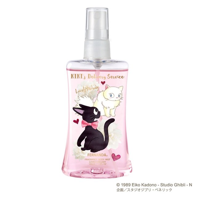 香りで人気のフェルナンダのフレグランスボディミストと、魔女の宅急便がコラボ♡スタジオジブリのキャラクターグッズを販売する全国のどんぐり共和国限定発売になりますが、SNSでも「可愛い!」と人気のアイテムです。(現在はフェルナンダ公式サイトでも発売中)水彩画タッチのイラストがとても素敵で、魔女の宅急便好きにはたまらないアイテム♡