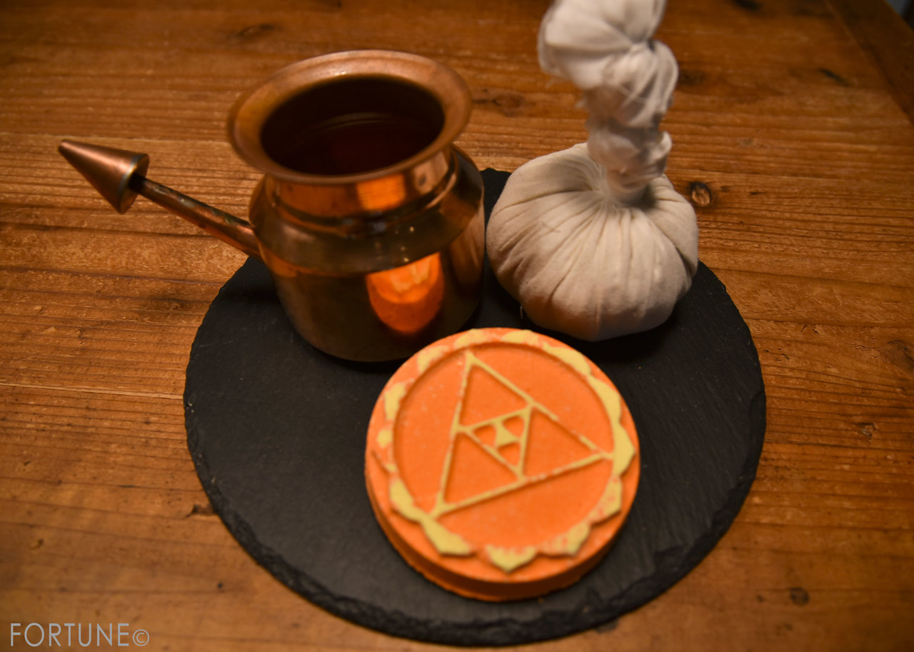 スパを受ける際のお部屋も、いつもとは違い灼熱のインドをイメージした内装にかわります。流れているBGMもまるで満員電車に乗っているような音楽から、ラジャスタン砂漠や湿度を帯びたケーララのジャングルへと変わるインドの雰囲気漂う演出になっています。