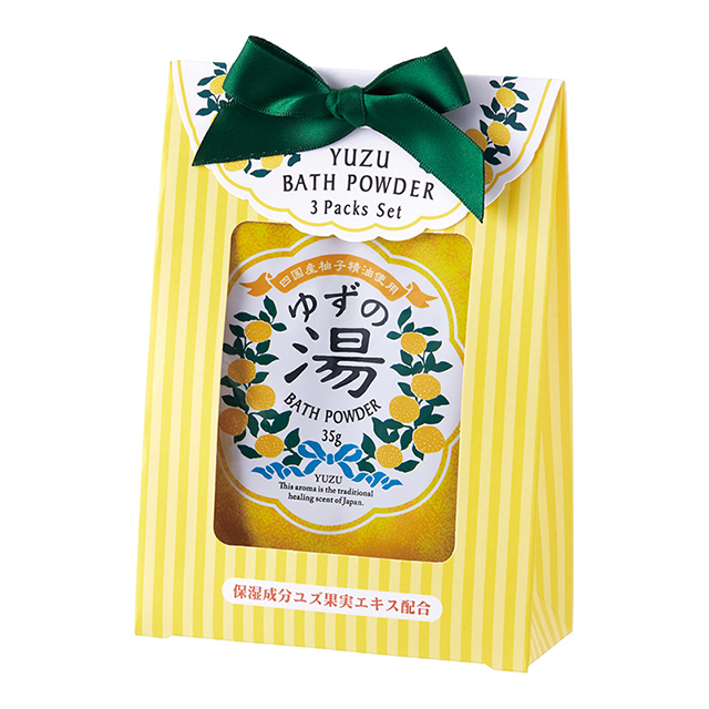 ゆずバスパウダーが3個セットになった『ゆず バスパウダーセット』。これから寒くなる冬にぴったりの、プチプレゼントにもおすすめの使い切りできる便利なパウダーセットです。