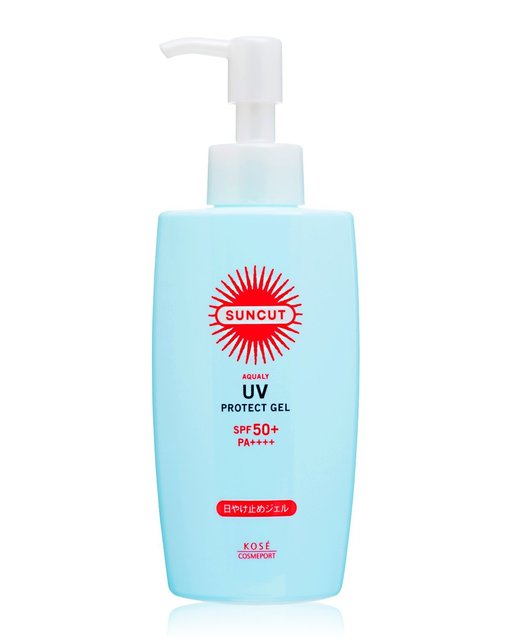 KOSEコーセーのサンカット日焼け止めジェル♡みずみずしいウォーターベースの日焼け止めで、軽い使い心地でべたつきのない使いやすいアイテムです。