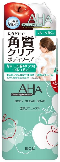 最初に紹介するのはクレンジングリサーチのボディクリアソープ♡洗うだけで角質ケアができる便利なアイテムで、フレッシュなアップルの香りが人気のアイテムです。角質ケア成分のフルーツ酸が配合されているので、二の腕やデコルテなど全身をツルツルボディに導いてくれます。