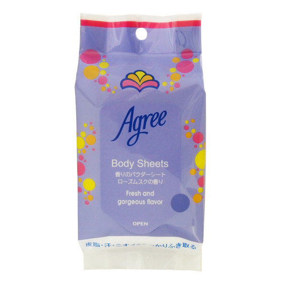 サッとひと拭きで、汗のべたつきやにおいを抑えてくれるアグリーのフレグランスボディシート。手軽に持ち運べるコンパクトなサイズ感が嬉しい♪ひんやりとしたクールで爽快な使い心地です。パウダー成分配合で拭いた後さらり肌が続きます。上品なローズムスクの香り。