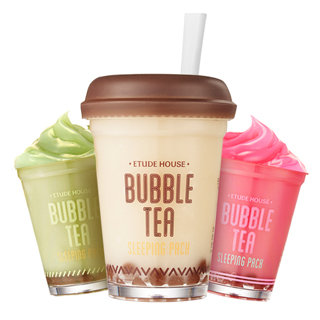 エチュードハウスのバブルティーナイトパックは、まるでタピオカドリンクみたいなキュートなデザインがSNS映え◎な、夜寝る前用のスペシャルケアアイテムです。ヒアルロン酸などの保湿美容成分がたっぷりと配合されたひんやりジェルをお休み前に顔全体に塗ります。