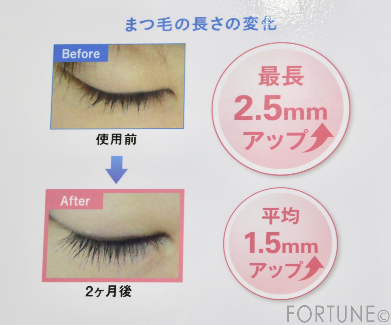 まつ毛のケアだけではなく、まつ毛の育成も促す「アイシャンプーロング」は30才〜79才の20名の男女に2ヶ月間起床時と就寝前に使用してもらったところ、まつ毛の長さが平均1.5mmアップしたデータを得ています。(アイシャンプー調べ)