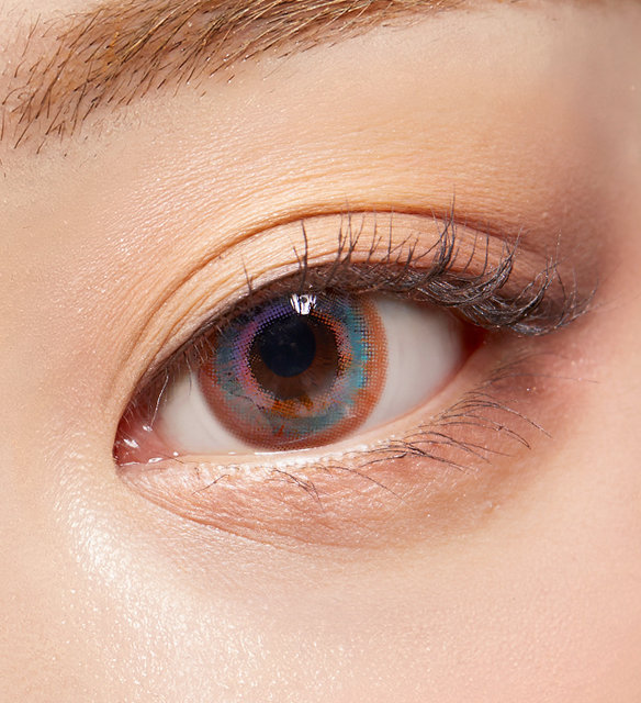ピンクやブルーオレンジなどのオーロラカラーは他ではなかなか見かけないデザインです。実際につけてみると色が強調されそうですが、実は不思議と瞳に馴染みやすくつけやすいカラコンなんですよ☆