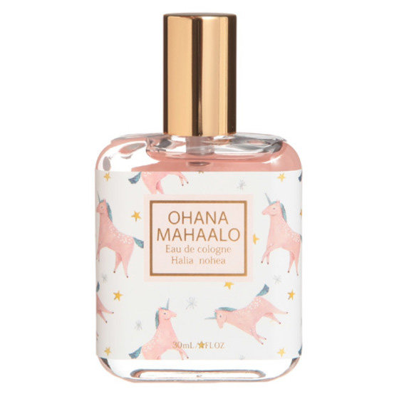 OHANA MAHAALO(オハナマハロ)と言えば、やっぱりオーデコロンが一番人気。種類は4つあって、香りのイメージに合わせたラベルデザインになっていてどれもおしゃれです。ピンクのお馬さんのデザインをはじめ、どのデザインも淡いピンクのカラーリングでとてもゆめかわいい♪ゴールドのゴージャスなフタに、ガラスボトルというリッチなムードも漂います。手のひらサイズで気軽に持ち運べるので、お出かけするときのお供にもOK。