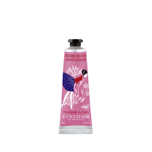 女性が描かれている数量限定のハンドクリームは南仏プロヴァンス出身のイラストレーターがデザインしたもので、ピオニーの香りが気分を上げてくれます。