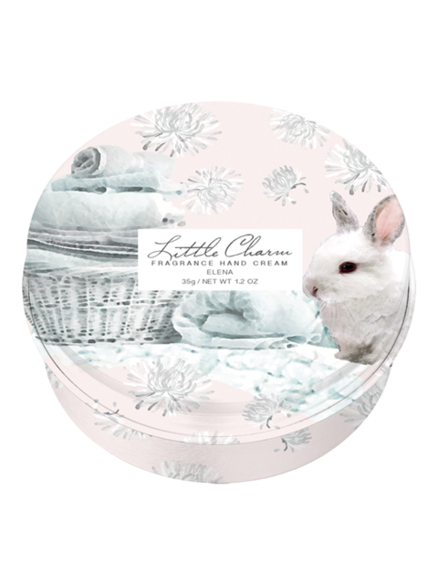 淡いピンク色に花模様、うさぎなど女性心をくすぐる可愛いクリーム缶のハンドクリームはフローラルとムスクの香り。