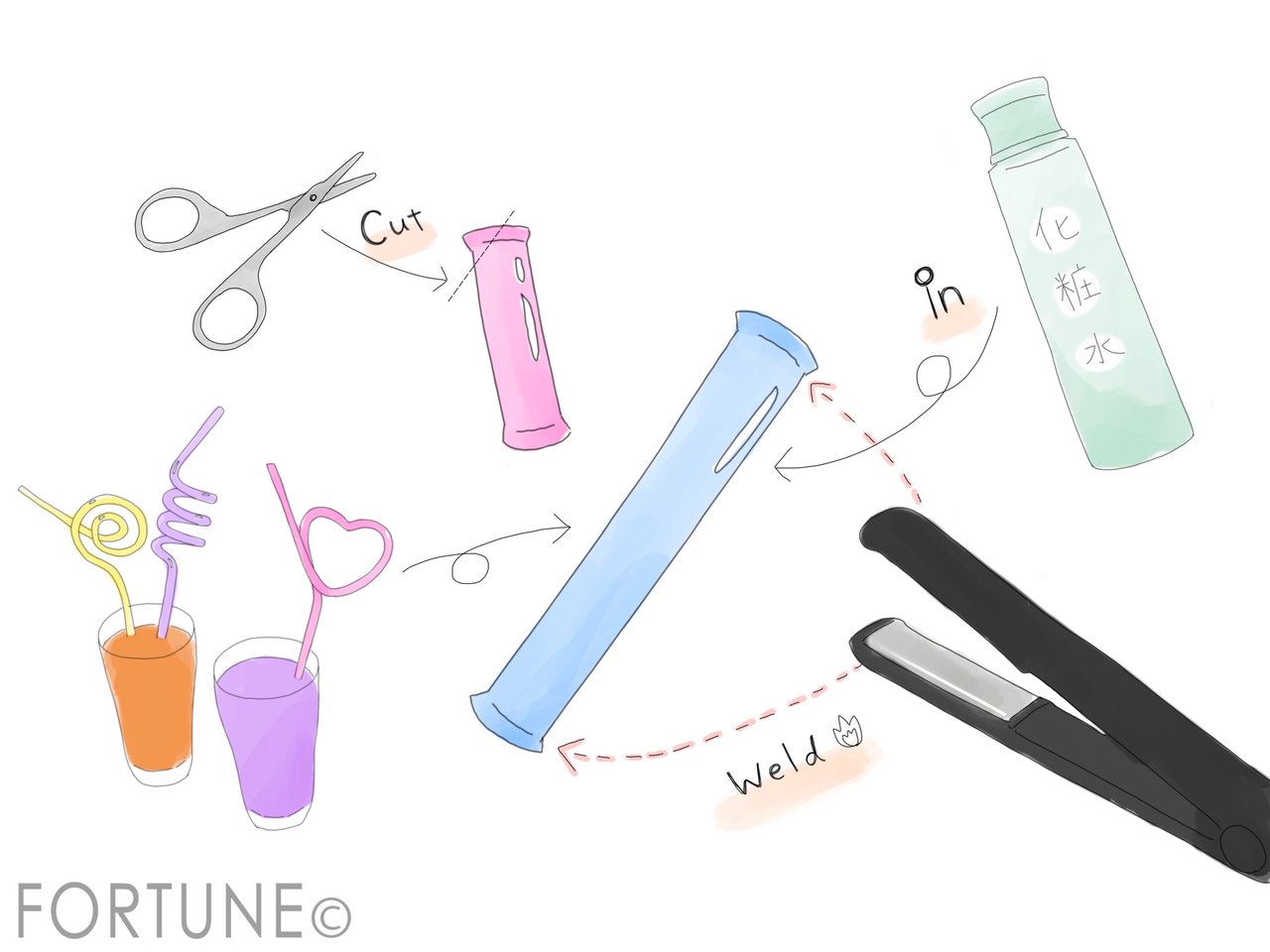 3、ストローの中に化粧品などをいれ、もう片方も溶接します。