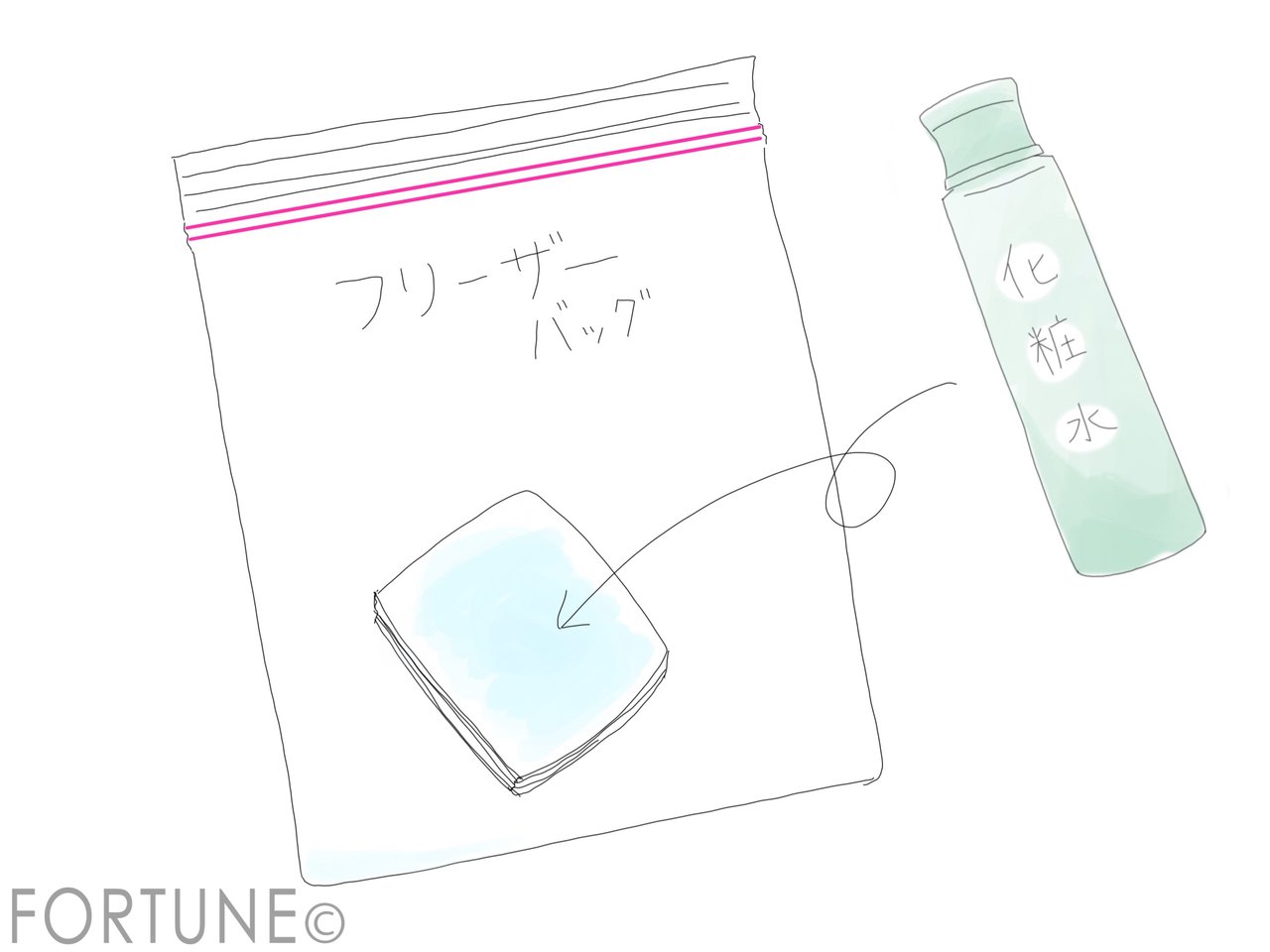 2,3泊程度の短期旅行にオススメなのは、コットンに直接化粧水や乳液をしみこませてチャックつきの密封できる袋に入れておく方法。