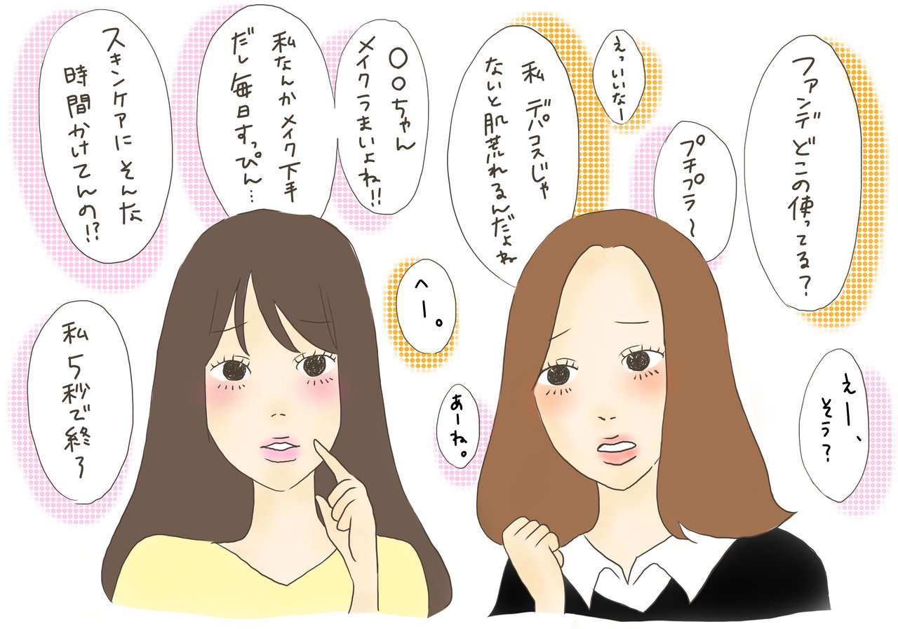 いつも化粧してて意識高いよね〜、私なんていつもすっぴんだよ」