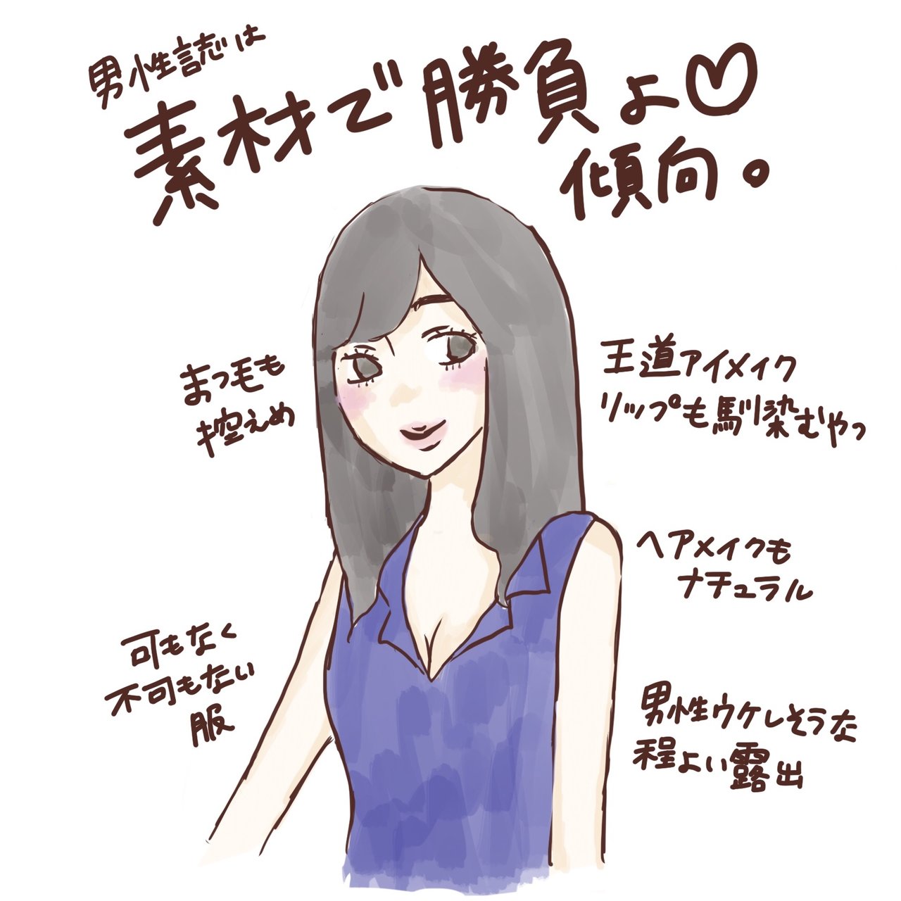 ナチュラルメイクが好きな男性が多いのは以前からわかっていましたが、今のナチュラルメイクブームと外見至上主義の時代が重なり、最近では本当に素材重視になってしまったご様子です。お疲れ様です。