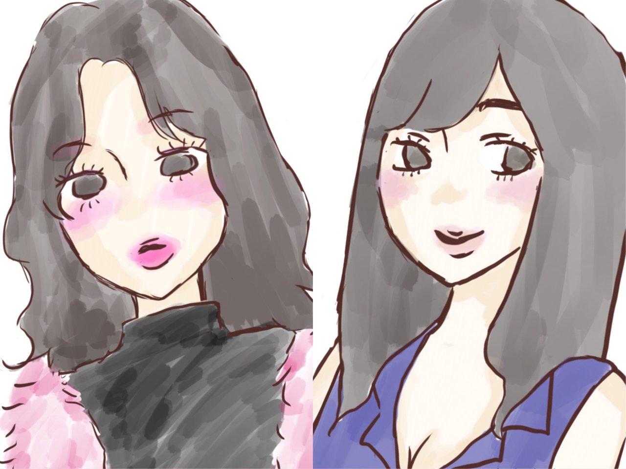 髪型は、大体がアイロンをすっとあてた生まれつきのサラツヤストレート♡みたいなやつとか、コテで軽く巻いた王道ヘアが多い模様。