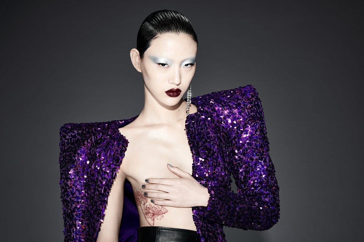 ICONIC LIPSTICK COLLECTIONのルックには、大胆な深みに包まれたワインカラーの「2929」が使用されています。