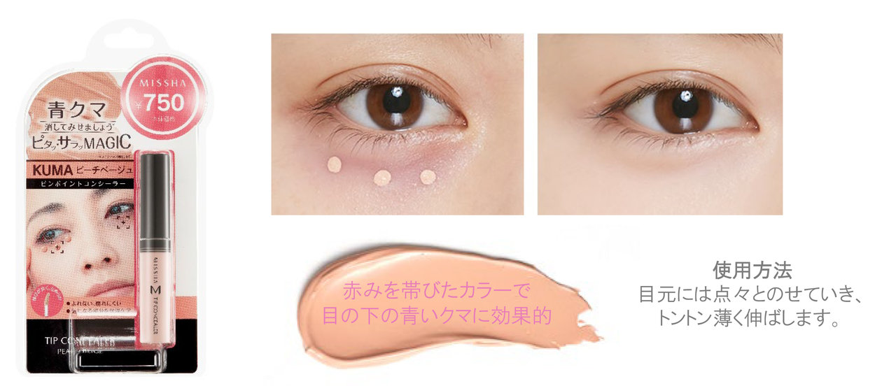 肌悩みにあった《ミシャ ザ コンシーラー》のカラーを使って、肌悩みをカバーし、より自然ですっぴん美人のようなベースメイクを仕上げてみてください。