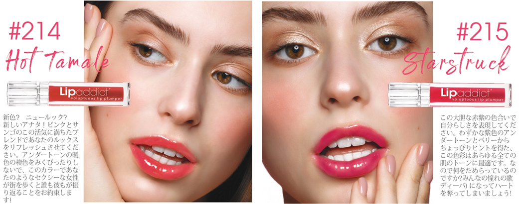 エステ専売化粧品製造販売などを行なう合同会社CHARIS&Co.が販売するリッププランパー《Lipaddict(リップアディクト)》の新色「ホットタマーレ(214)」「スターストラック(215)」が登場。