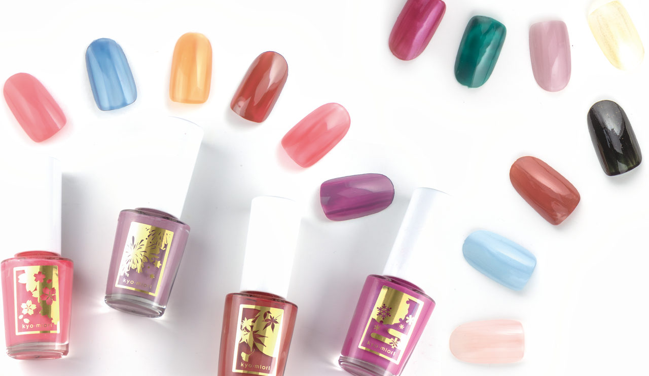 京都から発信されている和のコスメ「kyo・miori」より、美容成分によるネイルケアをしながら、全16色のネイルカラーが楽しめる美容液ネイル《四季彩まといネイル》が誕生しました。