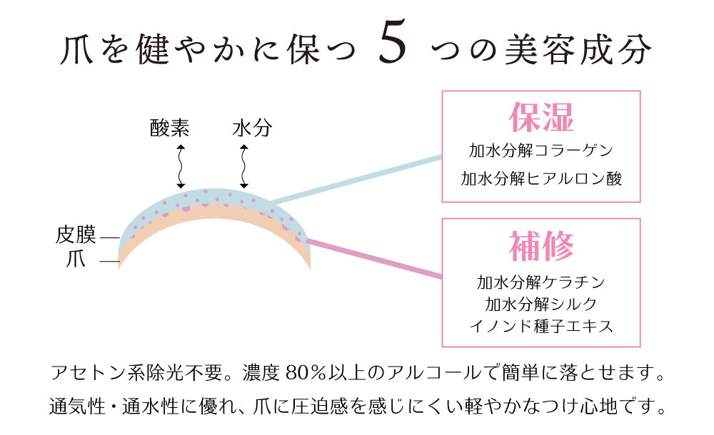 爪に負担をかけない処方に、更に5つの美容成分をプラス。