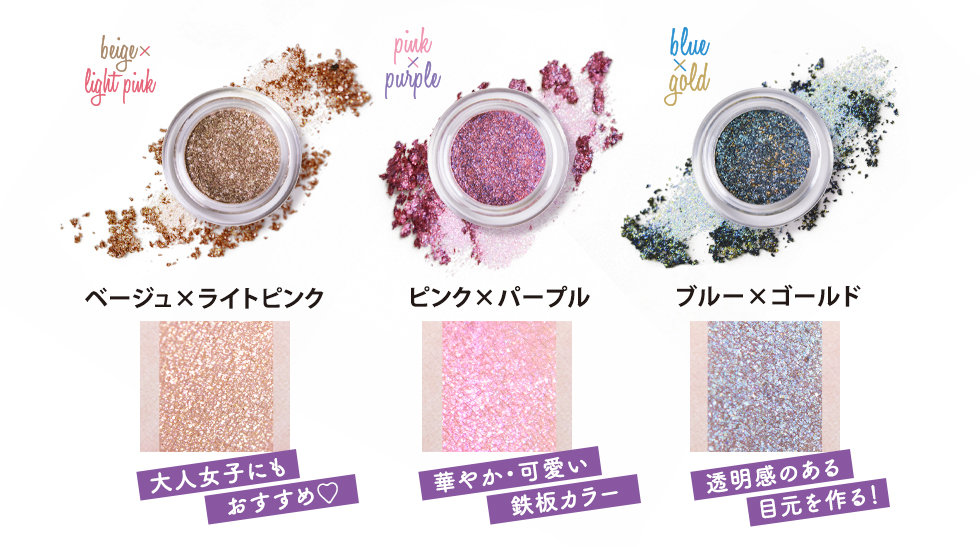 2色のグリッターをブレンドした仕上がりは、より印象的なきらめきを放ちます。