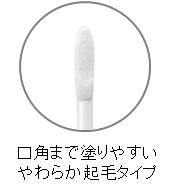 チップには、口角までしっかりとフィットして塗布しやすい起毛タイプを採用。