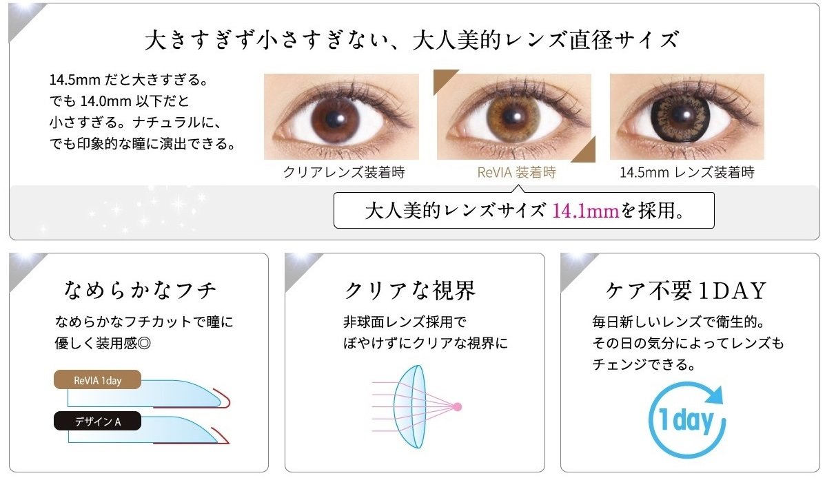 いつでも清潔なレンズで、その日のメイクやファッションに合わせてカラーを変えて楽しめるReVIA 1day CIRCLE。