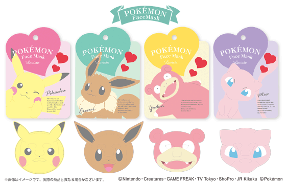 2019年7月13日(土)より、ピカチュウ・イーブイ・ヤドン・ミュウの《ポケモンフェイスマスク》が全国のバラエティショップにて順次発売されています。