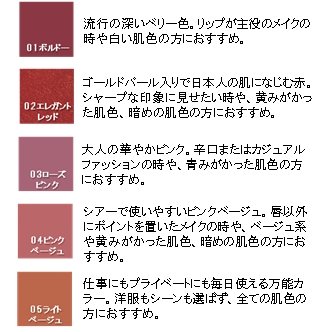 01ボルドー・02エレガントレッド・03ローズピンク・04ピンクベージュ・05ライトベージュ