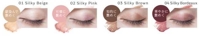 『美容液ケアアイシャドウ』は、パールに溶け込む微粒子ラメが、繊細な光沢感を放ちます。なめらかでツヤめく立体感のある目元に導いてくれる、まるでシルクなような上品な仕上がりです。