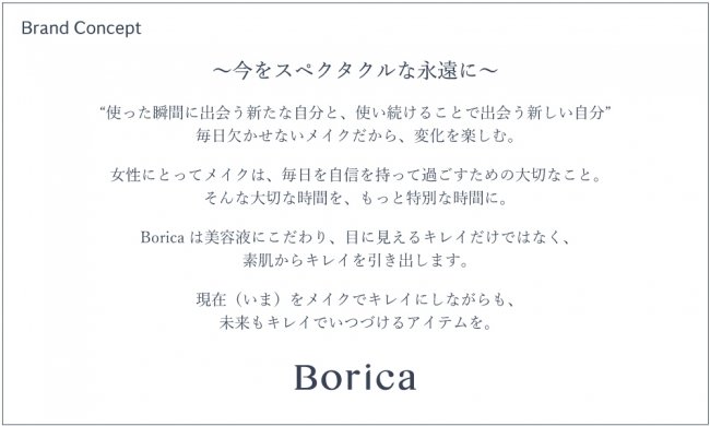 【Borica(ボリカ)】は、働く女性が常に自信に満ち、ベストでいられるアイテムを提供するコスメブランドです。現在(いま)も未来もキレイで居続けられるアイテムを展開しています。