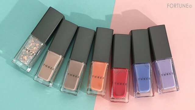 THREE(スリー)から、2021年春の新作コスメ情報が到着!2021年1月13日(水)より、限定『ニューセンセーションズ PPP』と、『ディメンショナルビジョンアイパレット』『アートエクスプレッショニストマスカラ』『ネイルポリッシュ』の新色が発売されています。今回は、4品の気になるスウォッチや使用感を、FORTUNE編集部が詳しくレビューします!