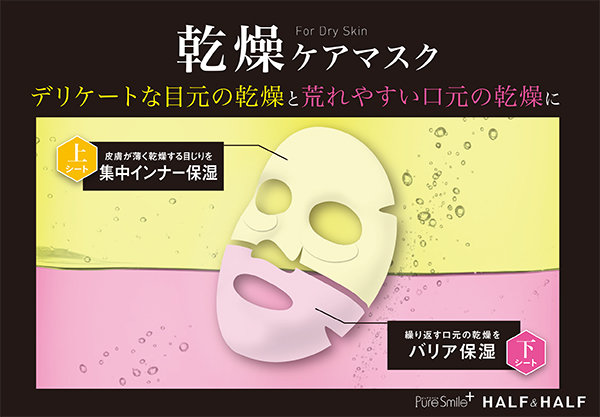 プレミアムなフェイスマスク《ピュアスマイルプラス(全4種)》8/29発売!上下に分かれたWフィクションシートがパーツ別に肌悩みをケア の画像