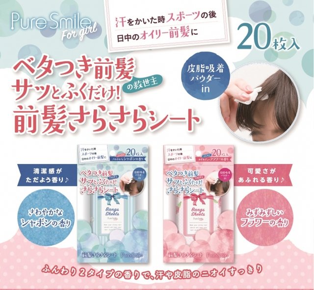 前髪専用の汗・皮脂ふき取りシート「ピュアスマイル フォーガール 前髪さらさらシート」が4/19新登場!! の画像
