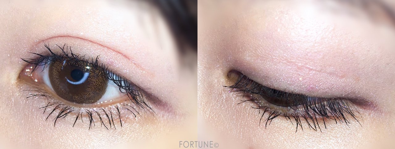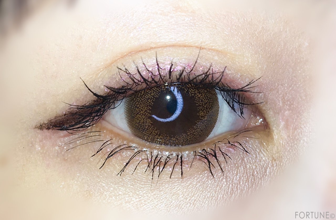 こちらは上まぶたと涙袋に塗ったものです。ひと塗りしただけで全く違った印象になります♡