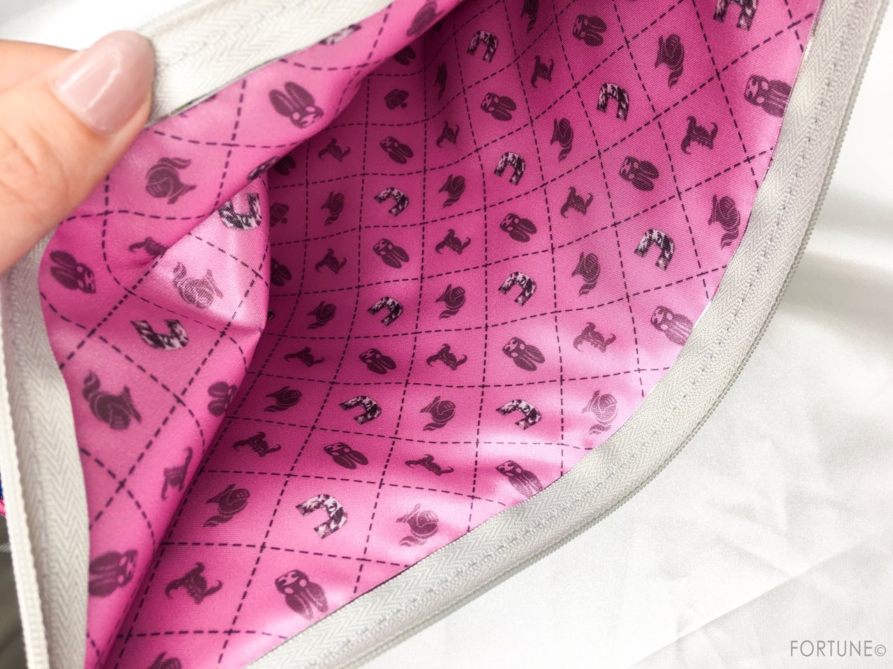 裏地もとってもかわいい!CHICCAの”C”や松浦氏の作品「Windy Bunny」のキッカオリジナルバージョンのイラストなどが描かれていてお洒落です。