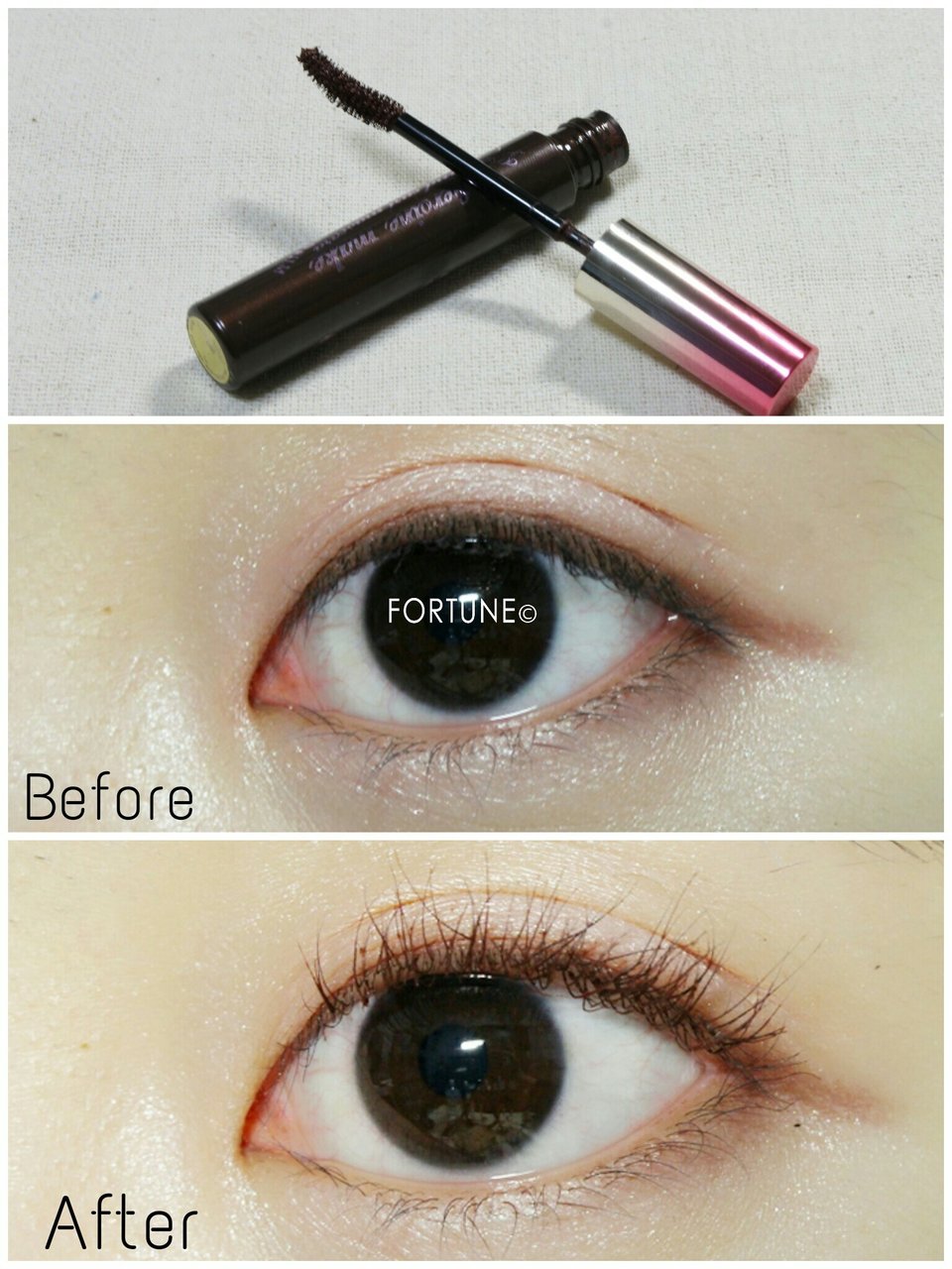愛嬌のある大きな目に見せるためにまつ毛はしっかりめに上げて、ブラウンカラーでふんわりとした印象をプラス。ボリュームタイプかロングタイプかはお好きな方をチョイスしてok。