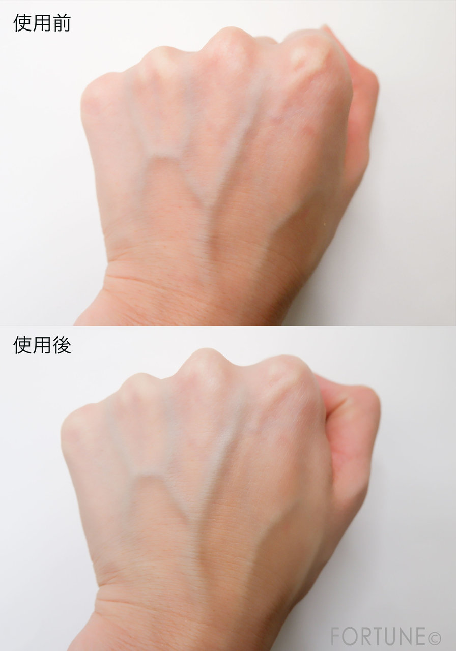 肌につけてみると、パウダーがとても細かく繊細で薄づきなのに綺麗に密着しサラッとした仕上がりに。