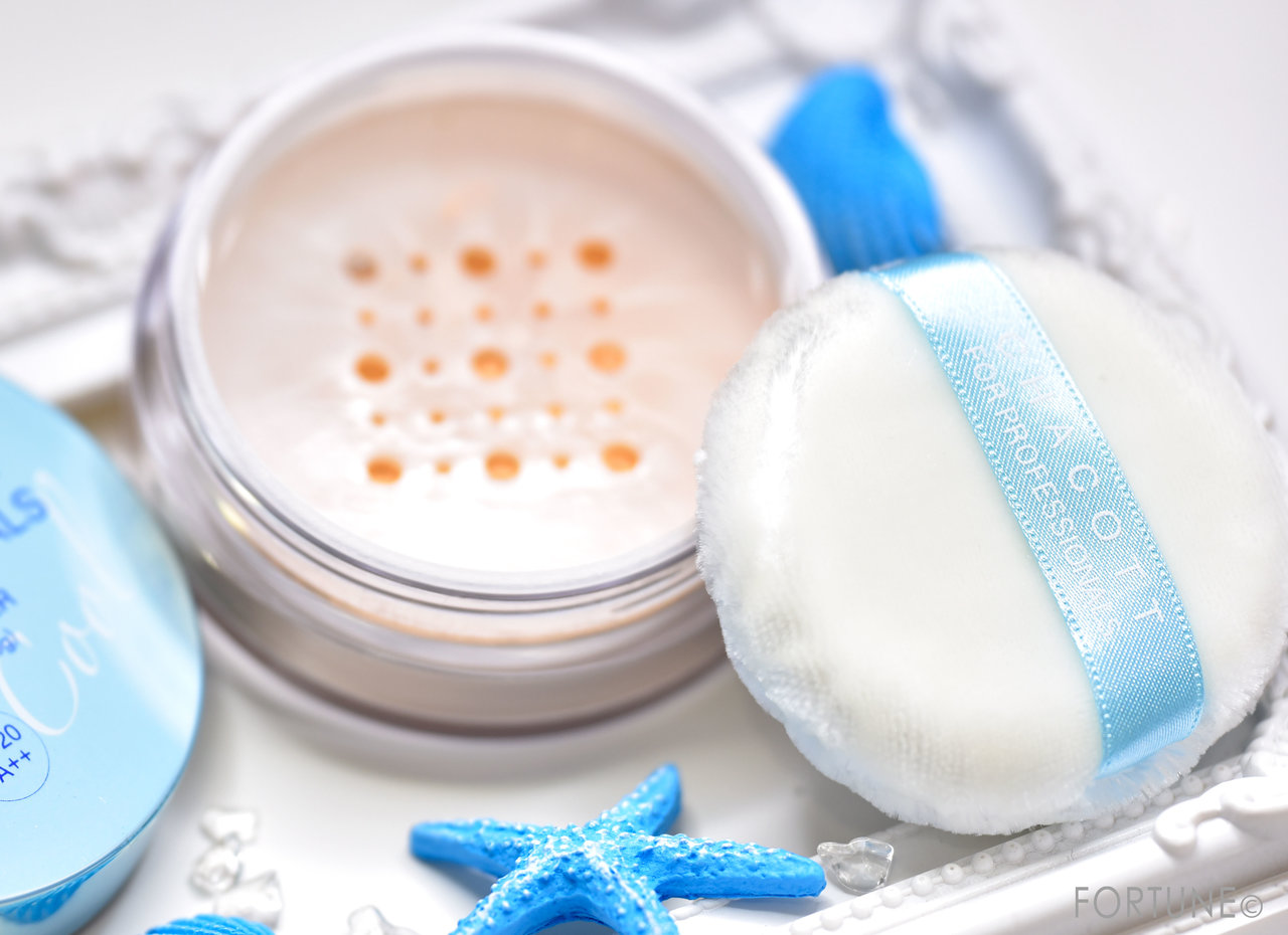 パウダーがとても細かく、肌のキメを整えて夏らしいマット肌に仕上げてくれました。限定のブルーのリボンが可愛いパフが付いており持ち運びにも便利なのでお直し用として持ち歩くのもオススメです。