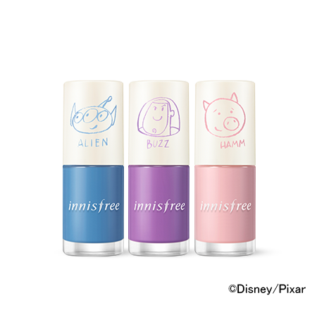 この他、単品としてはネイルカラー「リアルカラーネイル」の春らしい限定3色(下写真)や、ボタニカルエキス配合で肌に優しい「マイメイクアップクレンザー ミセラーオイルウォーター」、ムスク/ワイルドベリー/柚子茶が香る「チェジュライフパフュームド ハンドクリーム」もトイ・ストーリーフレンズの限定デザインで登場します★