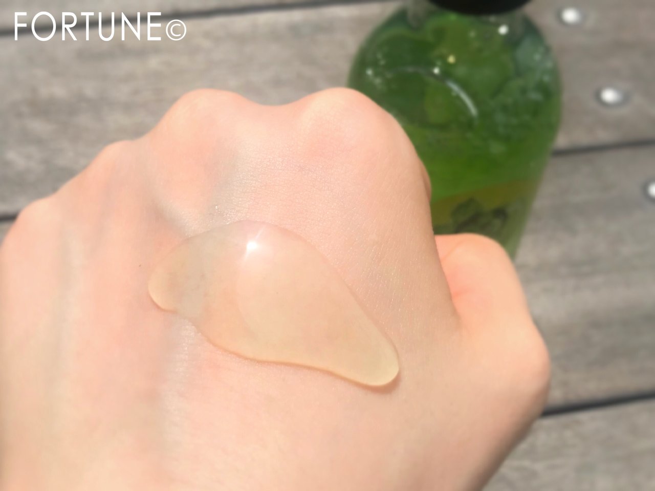 ごく薄いライム色を帯びた透明色で、さらりとしたテクスチャーです。爽やかなライムとミントの香りがで気分もリフレッシュされます。
