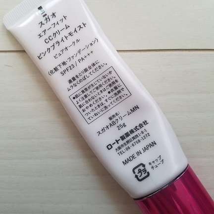 SUGAO(スガオ)エアーフィットCCクリーム ピンクブライトモイスト(写真右)の場合はSPF23/PA+++ですが、フェアフルール リンクルCCクリーム(写真左)はSPF27/PA++です。色の付き方も全く違うので、自分に合ったものを選ぶことが重要です。