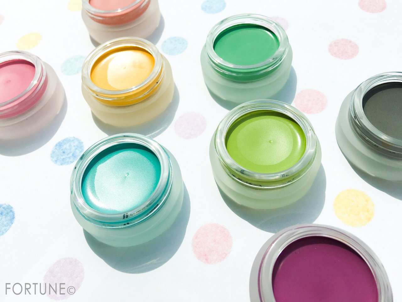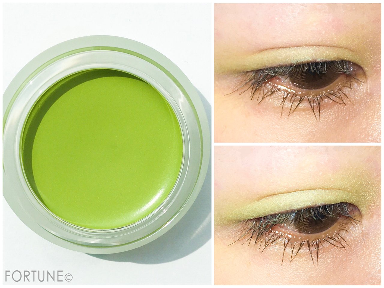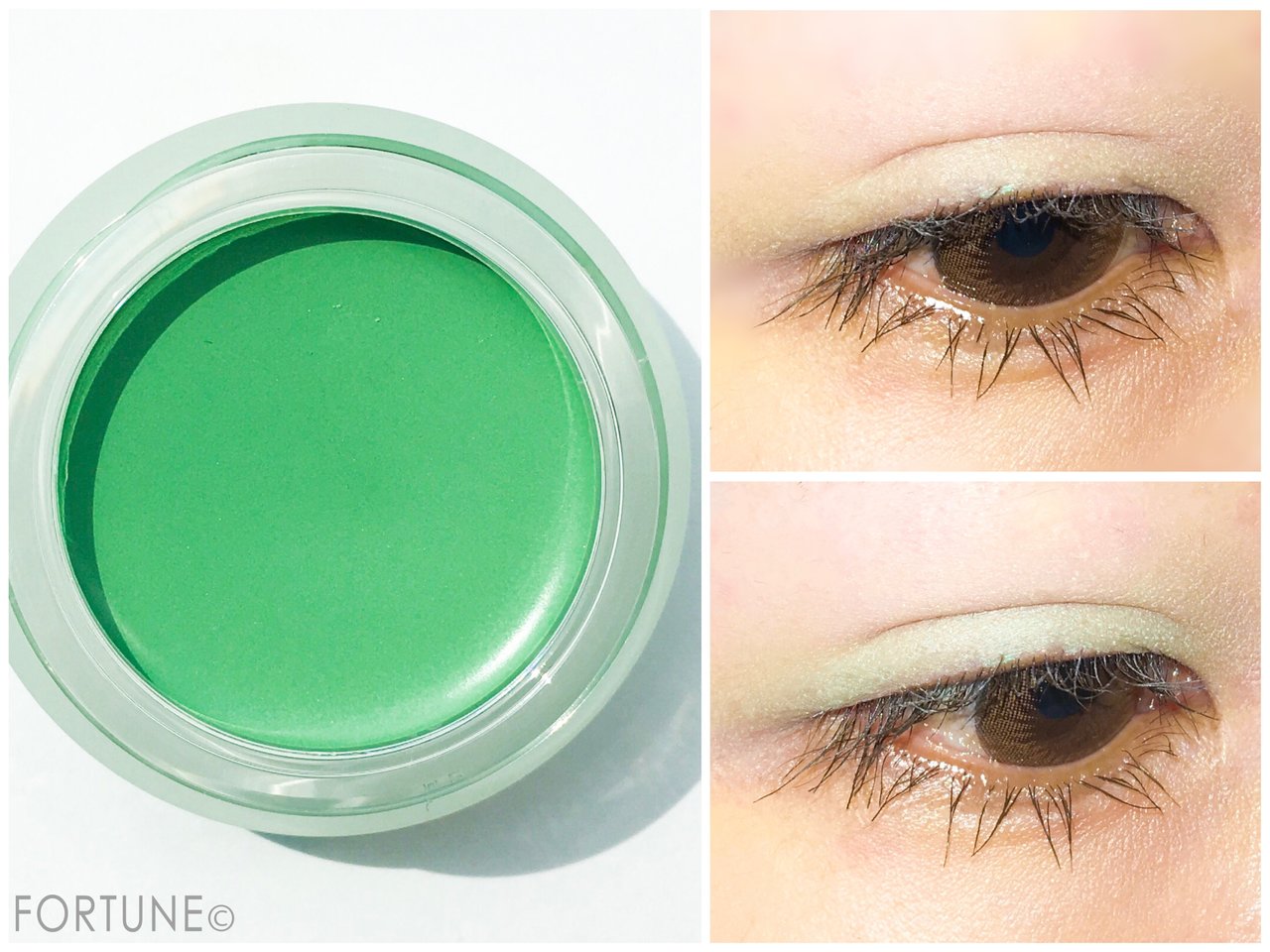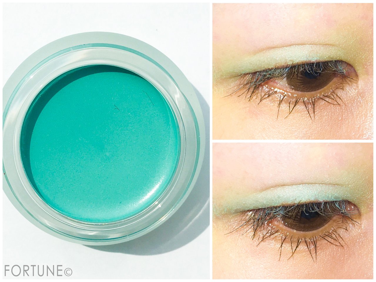 青っぽい緑で、まぶたにのせると透明感のある翡翠色が鮮やかに発色します。絶妙な色味がとても可愛く、ユーモア溢れるおしゃれな目元に仕上がります。