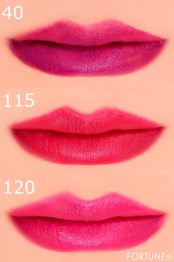 40は暗めの発色で、パープルがかったベリーカラーに。
